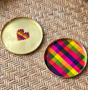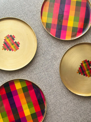 This set transforms that heritage into two distinct expressions: one coaster celebrates the pure geometry of Madras checks, while the other interprets the pattern into a pixelated heart - an emblem of intent and playfulness. Designed by Madras Finds, the coasters translate fabric into brass, creating objects that carry history, craft, and contemporary design into everyday life.